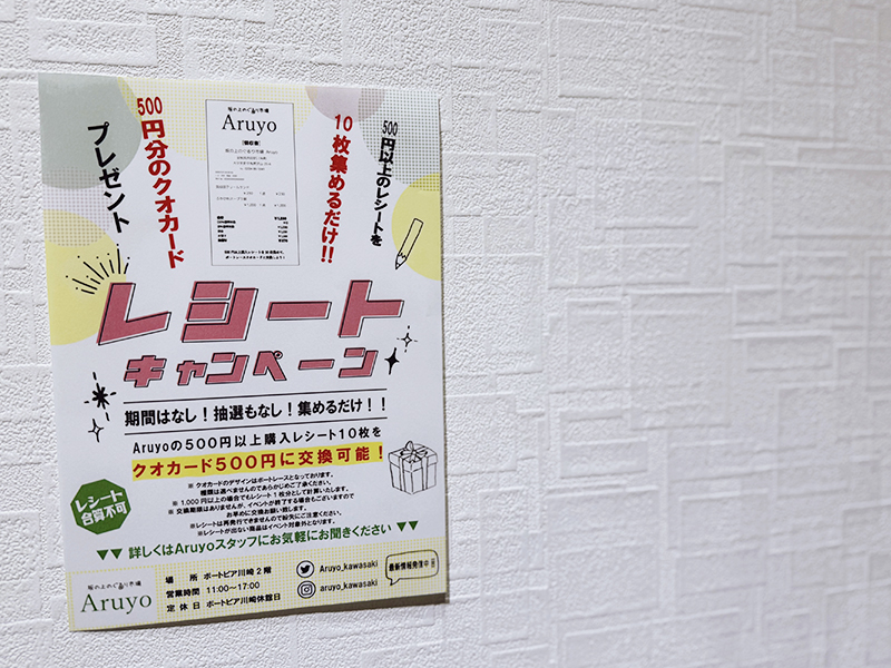 Aruyoまたは有料席売店で500円以上購入したレシートを10枚集めて