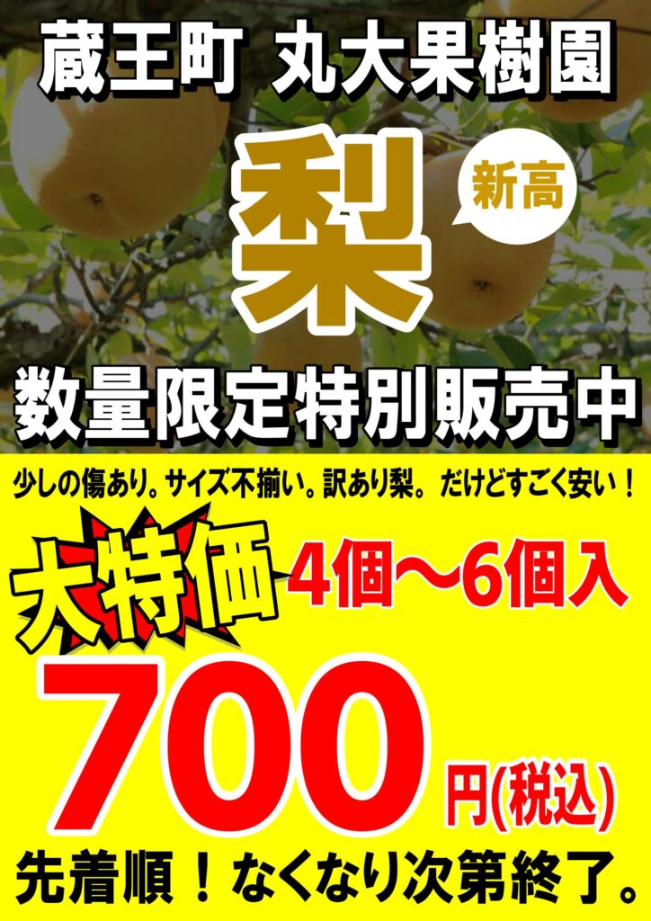 10月11日(土)~、蔵王町丸大果樹園さんの梨を販売いたします。